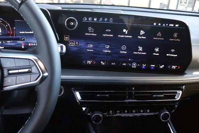 Exhaust - Quad Tip, Rear Spoiler - Roofline, Rear Trunk/Liftgate - Liftgate, Rear Trunk/Liftgate - Power Operated, Rear Trunk/Liftgate - Sensor-Activated, Door Handle Color - Body-Color, Exhaust Tip Color - Chrome, Fender Lip Moldings - Black, Front Bumper Color - Body-Color, Grille Color - Chrome, Mirror Color - Black, Rear Bumper Color - Body-Color, Rear Spoiler Color - Body-Color, Rocker Panel Color - Black, Window Trim - Chrome, Air Filtration, Armrests - Rear Outboard Seats, Center Console Trim - Metallic, Floor Mat Material - Carpet, Floor Material - Carpet, Floor Mats - Front, Floor Mats - Rear, Floor Mats - Third Row, Front Air Conditioning - Automatic Climate Control, Front Air Conditioning Zones - Dual, Heated Steering Wheel, Humidity/Dewpoint Sensors, Rear Air Conditioning - Automatic Climate Control, Rear Air Conditioning - Independently Controlled, Rear Air Conditioning Zones - Single, Shift Knob Trim - Urethane, Steering Wheel Trim - Leather, Adaptive Cruise Control, Adaptive Stop And Go Cruise Control - Semi-Automatic, Assist Handle - Front, Assist Handle - Rear, Capless Fuel Filler System, Cargo Area Light, Center Console - Front Console With Armrest And Storage, Cupholders - Front, Cupholders - Rear, Cupholders - Third Row, Easy Entry - Manual Rear Seat, Memorized Settings - Liftgate, Multi-Function Remote - Panic Alarm, Multi-Function Remote - Proximity Entry System, Multi-Function Remote - Trunk Release, One-Touch Windows - 4, Overhead Console - Front, Power Outlet(S) - 12v Cargo Area, Power Outlet(S) - 12v Front, Power Outlet(S) - Usb Front, Power Outlet(S) - Usb-C Front, Power Outlet(S) - Usb-C Rear, Power Outlet(S) - Usb-C Third Row, Power Steering - Variable/Speed-Proportional, Power Windows - Lockout Button, Push-Button Start, Reading Lights - Front, Reading Lights - Rear, Reading Lights - Third Row, Rearview Mirror - Manual Day/Night, Remote Engine Start, Steering Wheel - Tilt And Telescopic, Steering Wheel Mounted Controls - Audio, Steering Wheel Mounted Controls - Cruise Control, Steering Wheel Mounted Controls - Multi-Function, Steering Wheel Mounted Controls - Paddle Shifter, Steering Wheel Mounted Controls - Phone, Steering Wheel Mounted Controls - Voice Control, Storage - Accessory Hook, Storage - Door Pockets, Storage - Front Seatback, Storage - In Floor, Storage - Sunglasses Holder, Tool Kit, Vanity Mirrors - Dual Illuminating, Wireless Charging Station - Front, Axle Ratio - 3.49, Front Brake Type - Ventilated Disc, Front Brake Width - 0.91, Front Shock Type - Gas, Front Spring Type - Coil, Front Struts - Macpherson, Front Suspension Type - Lower Control Arms, Hill Holder Control, Rear Brake Type - Ventilated Disc, Rear Brake Width - 0.91, Rear Shock Type - Gas, Rear Spring Type - Coil, Trailer Backup Guidance, Trailer Stability Control, Abs - 4-Wheel, Braking Assist, Electronic Brakeforce Distribution, Electronic Parking Brake - Auto Off, Emergency Braking Preparation, Front Brake Diameter - 12.4, Front Stabilizer Bar, Front Suspension Classification - Independent, Power Brakes, Rear Brake Diameter - 12.4, Rear Stabilizer Bar, Rear Suspension Classification - Independent, Rear Suspension Type - Multi-Link, Roll Stability Control, Stability Control, Traction Control, Trailer Hitch, Trailer Wiring - 7-Pin, Alternator - 220 Amps, Auto Start/Stop, Battery - Agm, Battery - Maintenance-Free, Battery Saver, Connected In-Car Apps - App Marketplace Integration, Connected In-Car Apps - Google Assistant, Connected In-Car Apps - Google Pois, Connected In-Car Apps - Google Search, Customizable Instrument Cluster, Driver Assistance App - Roadside Assistance, Electronic Messaging Assistance - Voice Operated, Gauge - Tachometer, Hands-Free Phone Call Integration - Voice Operated, Infotainment - Chevrolet Infotainment System, Infotainment - Google Built-In, Infotainment Screen Size - 17.7 In., Instrument Cluster Screen Size - 11 In., Navigation System - Over-Th